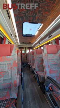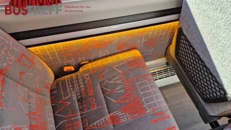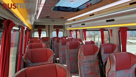 - Thermische und phonische Isolierung - 19 Fahrgastsitze / Schlafsessel - Total Kapazität maximal 19 + Fahrer - VIP Verglasung schwarz (Doppelglas) - Konvektorenheizung - Dachluke - Einfache Gepäckanlage links - Klimaanlage Webasto im Fahrgastraum - Gepäckablage links für leichtes Gepäck - Innenbeleuchtun im Fahrgastraum mehrstufig weiß /orange - Original Schlagtüre als Einstiegstüre mit elektrischer Trittstufe - Anbauteile in Wagenfarbe lackiert