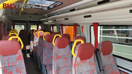- Phonische und thermische Isolierung - Elektrische Schiebetüre mit elektrischer Trittstufe - 21 Schlafsessel + Original Beifahrersitz + Fahrersitz (Optional 18+1+1 Sitze +) - Optional 3/1 Stehplätze - Klimaanlage Webasto/Diavia Modell RT 145 im Fahrgastraum - Frontklimaanlage = Doppelklima - Nachtbeleuchtung orange und weiß - Konvektorenheizung links und rechts - Abgeflachter Einstiegsbereich - Sitze mit Kunstlederkopfstütze, rückwärts verstellbar, auf Wunsch mit gelben Haltegriffen an den gangseitigen Sitzen und 3- Punktgurt an allen Plätzen - Verglasung Doppelglas VIP Black - Dachluke