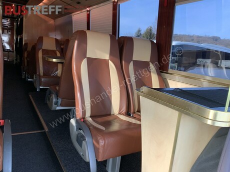 +++Hochwertige komfortable Ledersitze im gesamten Fahrgastraum für entspanntes Reisen+++ +++Großzügige Dreier-Sitzbänke im Lounge-Stil ? bieten Wohnkomfort wie im Wohnzimmer+++ +++Mehrere Sitzgruppen mit Tisch ? ideal für Besprechungen, Essen oder gemeinsames Reisen+++ +++Großer Vierer-Tischbereich für komfortables Arbeiten oder geselliges Beisammensitzen+++ +++Separate Lounge im hinteren Bereich mit gemütlicher Rundsitzgruppe+++ +++Geräumige Bordküche mit viel Arbeitsfläche+++ +++Mikrowelle integriert+++ +++Großer Glaskühlschrank für Getränke und Snacks+++ +++Spülbecken mit Wasseranschluss sowie Stauraum in Oberschränken+++ +++2 integrierte Fernseher für Unterhaltung während der Fahrt+++ +++PlayStation PS4 verbaut ? Entertainment für längere Reisen+++ +++Mehrere Schlafplätze durch integrierte Schlafkabinen / Liegeplätze im hinteren Bereich+++ +++Ideal geeignet für lange Fahrten, Touren oder Übernachtungen unterwegs+++