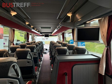 ?MB-Motor 315 kW Euro6 * MB PowerShift-Getriebe * ABA Notbremsassistent * ART Abstandsregeltempomat * Spurhalteassistent * Attention Assist * ESP, ABS, ASR * Retarder * Klimaautomatik * Standheizung vorwählbar * 48 + 2 +1 Sitze * Schlafsitze rück- / seitwärts verstellbar in Teilleder mit Tischen, Netzen, Fußrasten, Armlehnen, Gurten und Kopfstützen * USB Buchsen für jeden Sitzplatz * Begleitersitz verstellbar * Boden in Holzoptik * 2 ? Kühlschrank * WC mit Waschbecken, Frostschutz-Heizung * Service-Sets mit Düsenbelüftung, Leseleuchten * Radio, CD MP3, USB, Mikrofon * DVD-Videoanlage mit 2 Flachbild-Monitoren * Bluetooth-Telefonie * Navi * Navigation auf Bildschirme * Xenon-Scheinwerfer * Nebelscheinwerfer * elektrische Außenspiegel, verstellbar, beheizbar * Rückfahrkamera mit Waschdüse * Kamera an Tür 2 * Lichtsensor * Regensensor * Bordcomputer * Reifendrucksensoren * Fahrersitz luftgefedert, 3 x Luftpolster, drehbar, Armlehnen, Sitzheizung & -Belüftung * Schlafkabine * Hebe-Senk-Anlage, Kneeling * Haltestellenbremse, Berganfahrhilfe * Doppelverglasung * Vorhänge * Frontscheibenrollos elektrisch, Rollo Fahrerfenster * 2 Glas Dachluken elektrisch * Großer Kofferraum * Skikofferösen * Radzierblenden