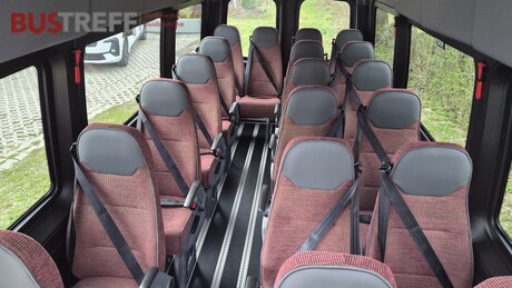 - 19 Fahrgastsitze / Schlafsessel - Total Kapazität maximal 19 + Fahrer - VIP Verglasung schwarz (Doppelglas) - Dachluke - Klimaanlage MB im Fahrgastraum - Innenbeleuchtun im Fahrgastraum weiß - Original Schlagtüre als Einstiegstüre mit mechanischer Trittstufe