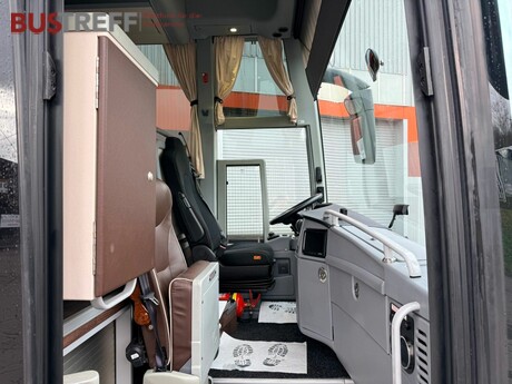* 34+1+1 Sitze mit Gurten * bis zu 70 Sitze möglich gemäß Zulassung & CoC (aber nur 34+1+1 vorhanden) * Schlafsitze rück- / seitwärts verstellbar mit Armlehnen, Lederkopfteil und -Wangen, Fußauflage und Premium Sitzabstand * Lounge Sitzgruppe im Heck mit Tisch und eigenen Bildschirmen * Tische, Netze, Fußrasten * 220V + USB für jeden Sitzplatz * Klimaautomatik * Webasto Standheizung * Reiseleiter-Sitz * Reiseleiter-Schrank * Service-Sets mit Düsenbelüftung, Leseleuchten & Hostessruf * geschlossene Hutablagen * DVD-Video-Anlage mit diversen elektrischen Flachbildschirmen * zusätzlicher Bildschirm für Reiseleiter * Frontkamera * 230 Volt * Radio, CD MP3, Mikrofon * Umfeldbeleuchtung über LED-Spots * Panorama-Glasdach * 2 Dachluken verglast * WC * Große Küche mit Waschbecken, Kaffemaschine, Eismaschine, Mikrowelle * 4 Kühlschränke * Viel Stauraum