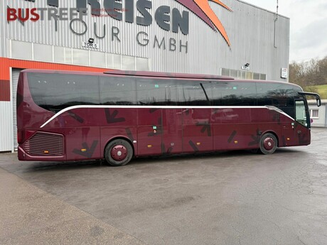 ?MB-Motor 315 kW Euro6 * MB PowerShift-Getriebe * ABA Notbremsassistent * ART Abstandsregeltempomat * Spurhalteassistent * Attention Assist * ESP, ABS, ASR * Retarder * Klimaautomatik * Standheizung vorwählbar * 48 + 2 +1 Sitze * Schlafsitze rück- / seitwärts verstellbar in Teilleder mit Tischen, Netzen, Fußrasten, Armlehnen, Gurten und Kopfstützen * USB Buchsen für jeden Sitzplatz * Begleitersitz verstellbar * Boden in Holzoptik * 2 ? Kühlschrank * WC mit Waschbecken, Frostschutz-Heizung * Service-Sets mit Düsenbelüftung, Leseleuchten * Radio, CD MP3, USB, Mikrofon * DVD-Videoanlage mit 2 Flachbild-Monitoren * Bluetooth-Telefonie * Navi * Navigation auf Bildschirme * Xenon-Scheinwerfer * Nebelscheinwerfer * elektrische Außenspiegel, verstellbar, beheizbar * Rückfahrkamera mit Waschdüse * Kamera an Tür 2 * Lichtsensor * Regensensor * Bordcomputer * Reifendrucksensoren * Fahrersitz luftgefedert, 3 x Luftpolster, drehbar, Armlehnen, Sitzheizung & -Belüftung * Schlafkabine * Hebe-Senk-Anlage, Kneeling * Haltestellenbremse, Berganfahrhilfe * Doppelverglasung * Vorhänge * Frontscheibenrollos elektrisch, Rollo Fahrerfenster * 2 Glas Dachluken elektrisch * Großer Kofferraum * Skikofferösen * Radzierblenden